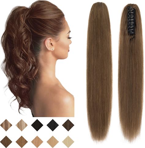 SEGO Claw Clip Ponytail Extension Human Hair Clip In Ponytail Hair Extensions Real Human Hair Pony Tails Hair Extensions For Women 14 Inch 04 Medium