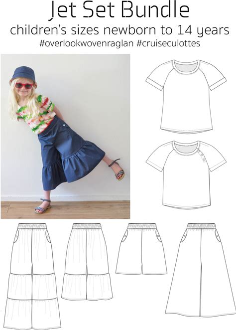 Jet Set Bundle, PDF Sewing Pattern, Hat Pattern, Woven Top Pattern, Culottes Pattern, Children Sew, Print At Home PDF, A0, Projection Sewing