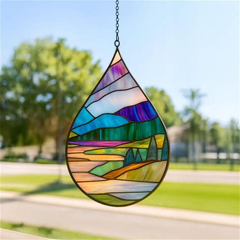 Digital PST26 Teardrop Stained Glass Moutain Landscape Stream Pattern, Moutain Stream Suncatcher Digital Design Template Digital Pattern