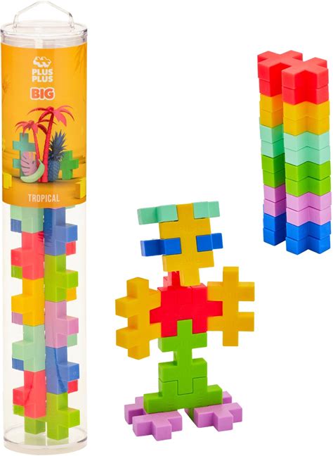 PLUS PLUS Big - 15 Piece Tropical Mix - Construction Building Stem/Steam Toy, Interlocking Large Puzzle Blocks For Toddlers And Preschool, Open Play