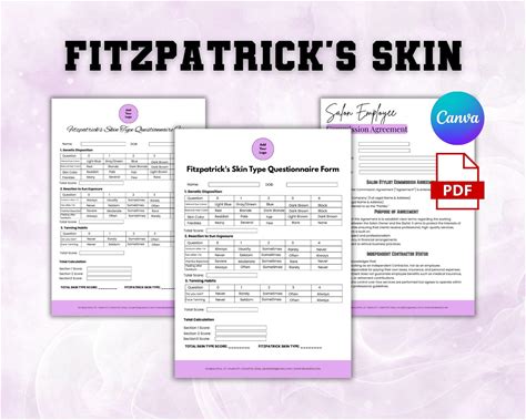 Fitzpatrick's Skin Type Questionnaire Form, Fitzpatrick Scale, Editable Template For Esthetician And Medspa Owners, Skin Assessment Template