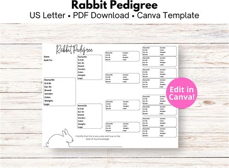 Rabbit Pedigree Chart - 4 Generations - Edit In Canva - Instant Download