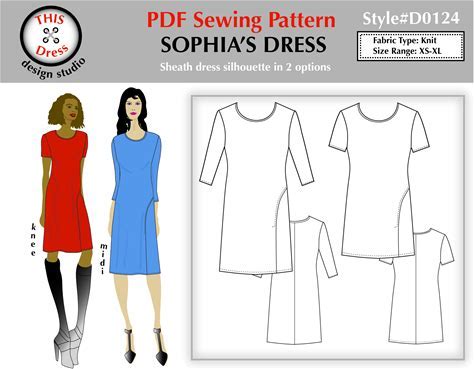PDF Sewing Pattern Instant Digital Download Women's Sheath Dress With Front Pleat - Easy To Sew For Knit Fabrics - Sizes XS-XL