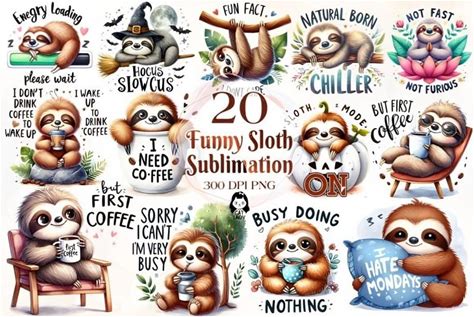 Funny Sloth Sublimation Quotes Bundle PNG, Funny Sloth Watercolor Clipart, Funny Quotes, Sloth PNG, Sloth Sublimation, Funny Sloth PNG