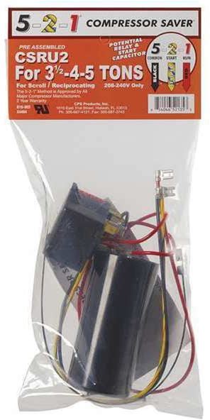 5-2-1 COMPRESSOR SAVER Compressor Saver, Potential Relay, Start Capacitor, 208 To 240, Single, 3.5 To 5, CSRU2