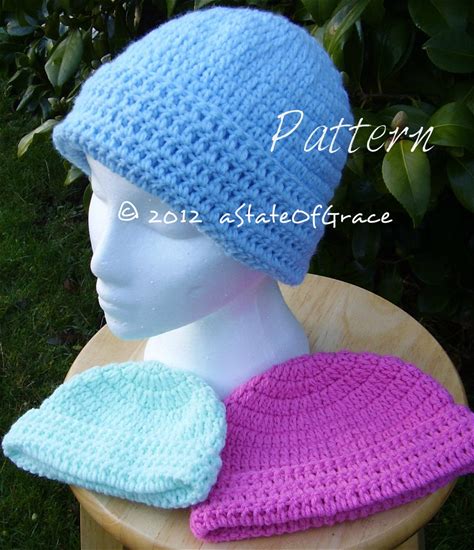 Crochet Watch Cap Pattern, Beanie Hat Easy Crochet Pattern, Worsted Wool Yarn, Roll Brim Hat, XS S M L XL, Tweens - Adults, Instant Download