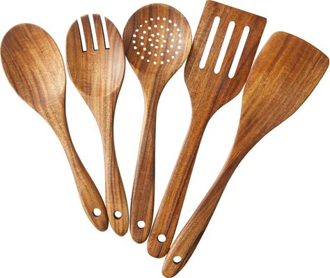 Wooden Kitchen Utensil Set For Nonstick Cookware Long Lasting, Brown