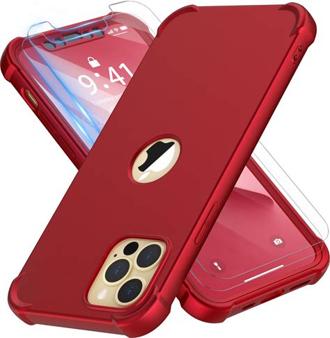 ORETECH For iPhone 12 Pro Max Case, With [2 X Screen Protectors] [10 ft Military Grade Drop Test] [Camera Protection] 360Ãa€Sãa° Shockproof Slim Thin Red
